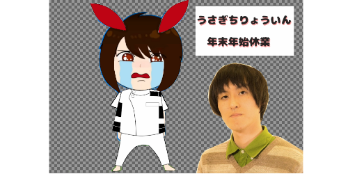 2020/10/05(月) 03:44:58.71ID:yVIElbar0 マス子「うさぎちりょういんは年末年始は休業だゾ!!!年末に来てもなにもないゾ!」