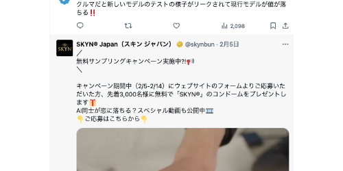2024/02/28(水) 12:58:59.84ID:JhA4MGPS0 コンドームの広告にツイッタープローモーションしてもらって